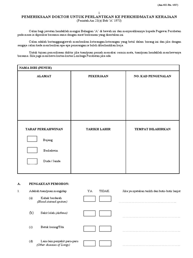 Borang Medical Check Up Untuk Kerja Kerajaan Borangnegeri